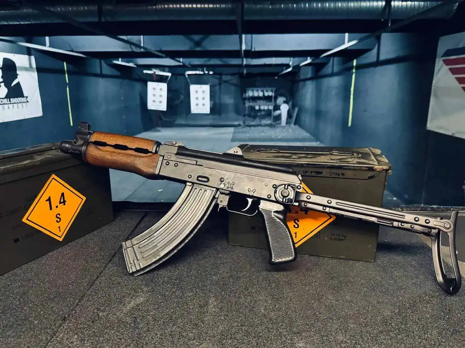 - The firing line: Place the firearm carefully on the bench or counter of a shooting bay (ensuring all safety rules are visibly adhered to, of course).